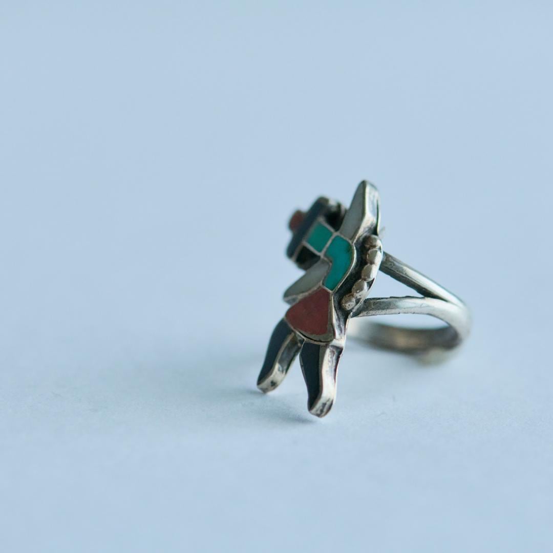 【J216】ヴィンテージ ズニ族 インレイ カチナダンサー リング 9号