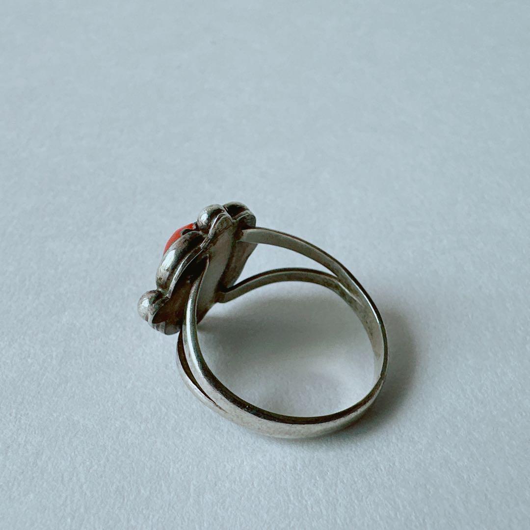 【J225】ヴィンテージ ナバホ族 コーラル リング 12号
