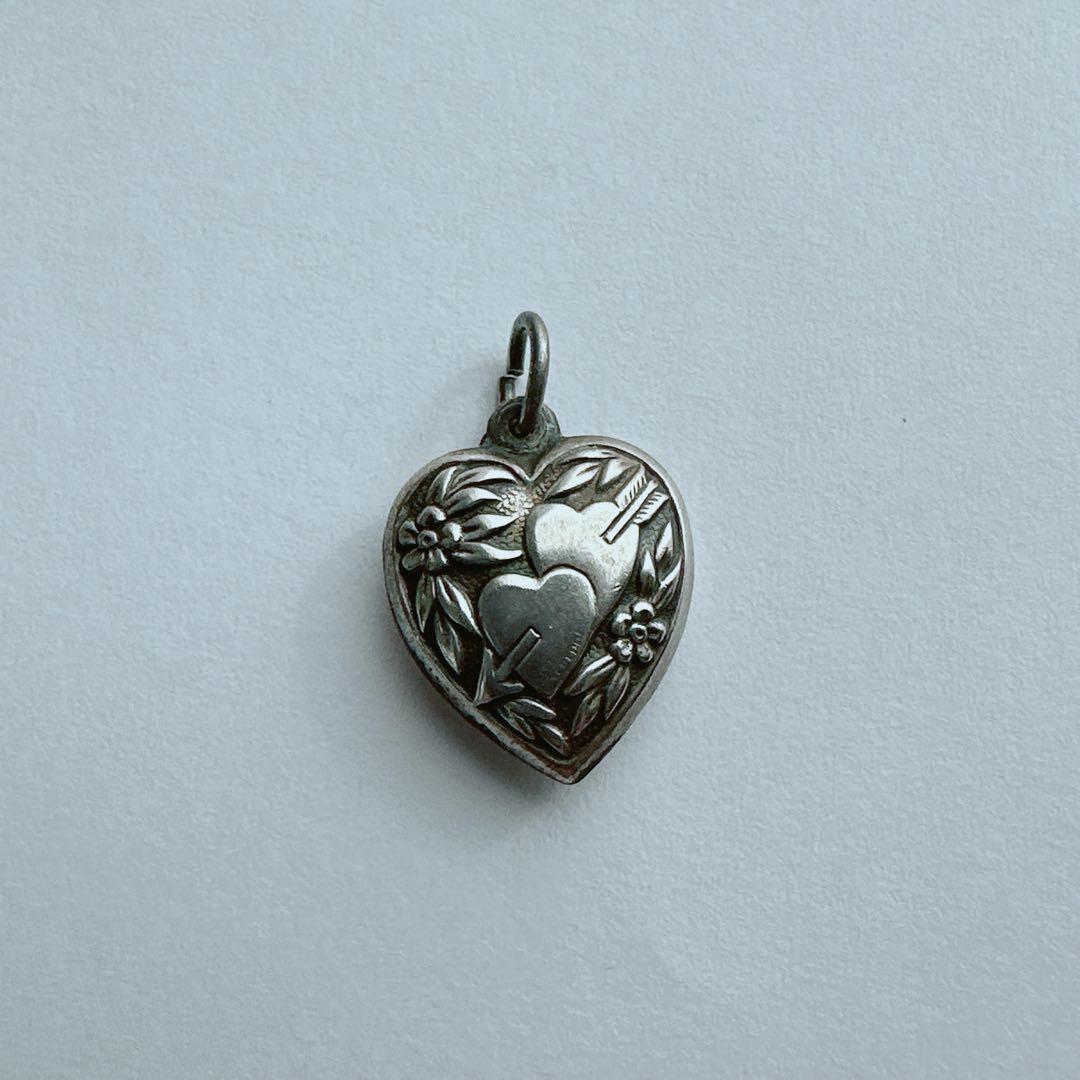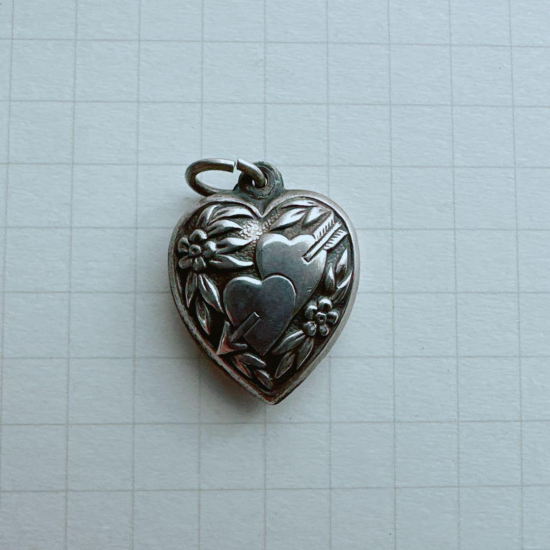 【J248】10s -40s ダブルハート 勿忘草 スウィートハートジュエリー ヴィンテージ チャーム