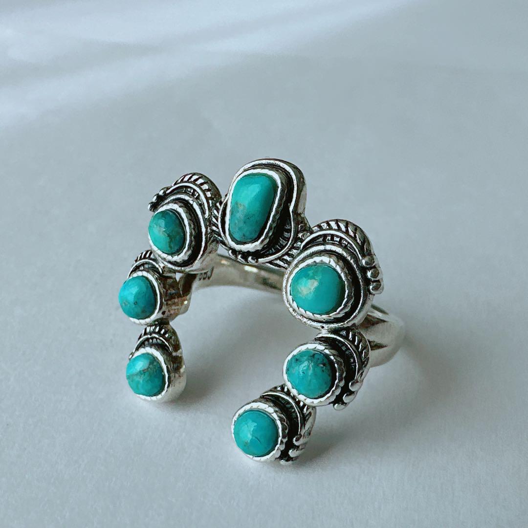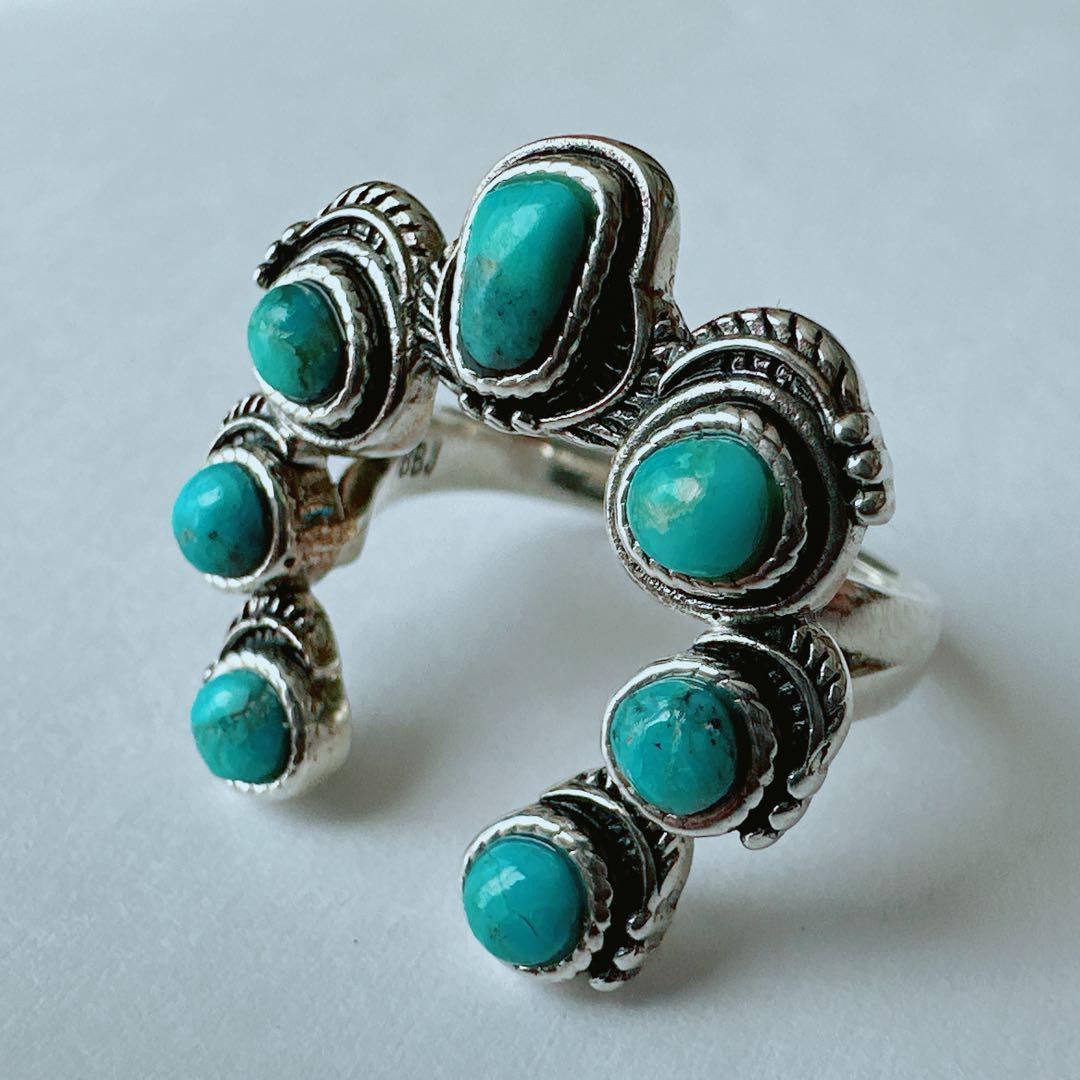 七つのターコイズが並ぶ、ナバホ族の伝統美を感じるヴィンテージリング。