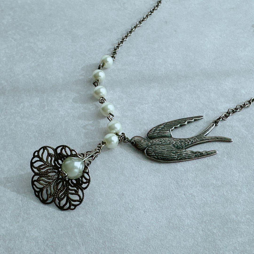 ツバメモチーフ × パール × フィリグリーの美しいネックレスです。