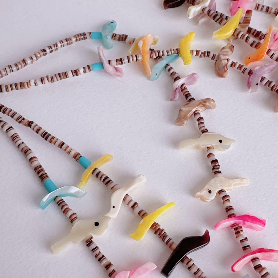 【J343】ヴィンテージ フェティッシュ 小鳥 ズニ 4連 ネックレス