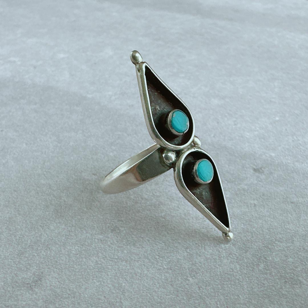 【J332】ヴィンテージ ナバホ リング ターコイズ シルバー 11号