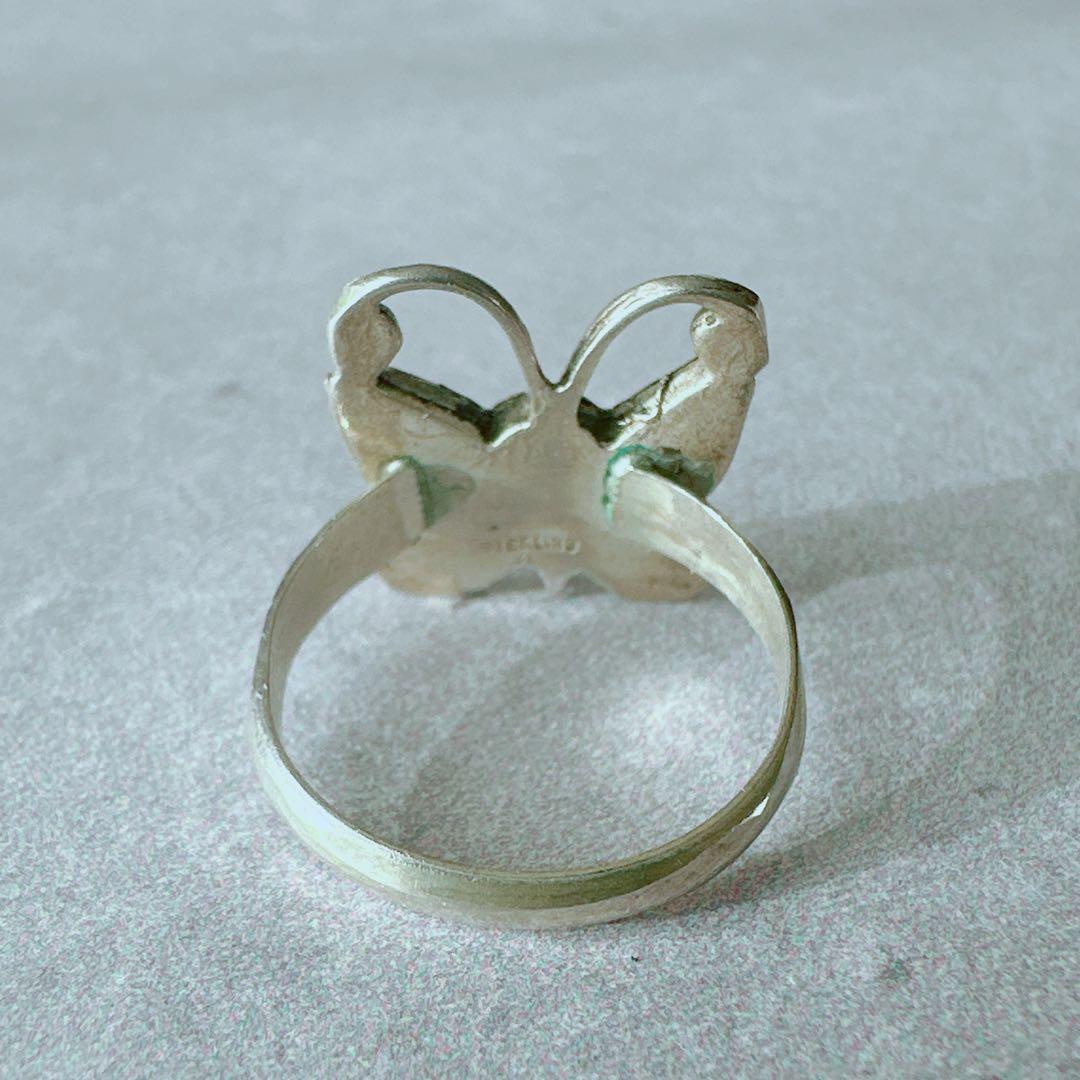 【J335】ヴィンテージ ズニ インレイ 蝶 バタフライ リング 15号