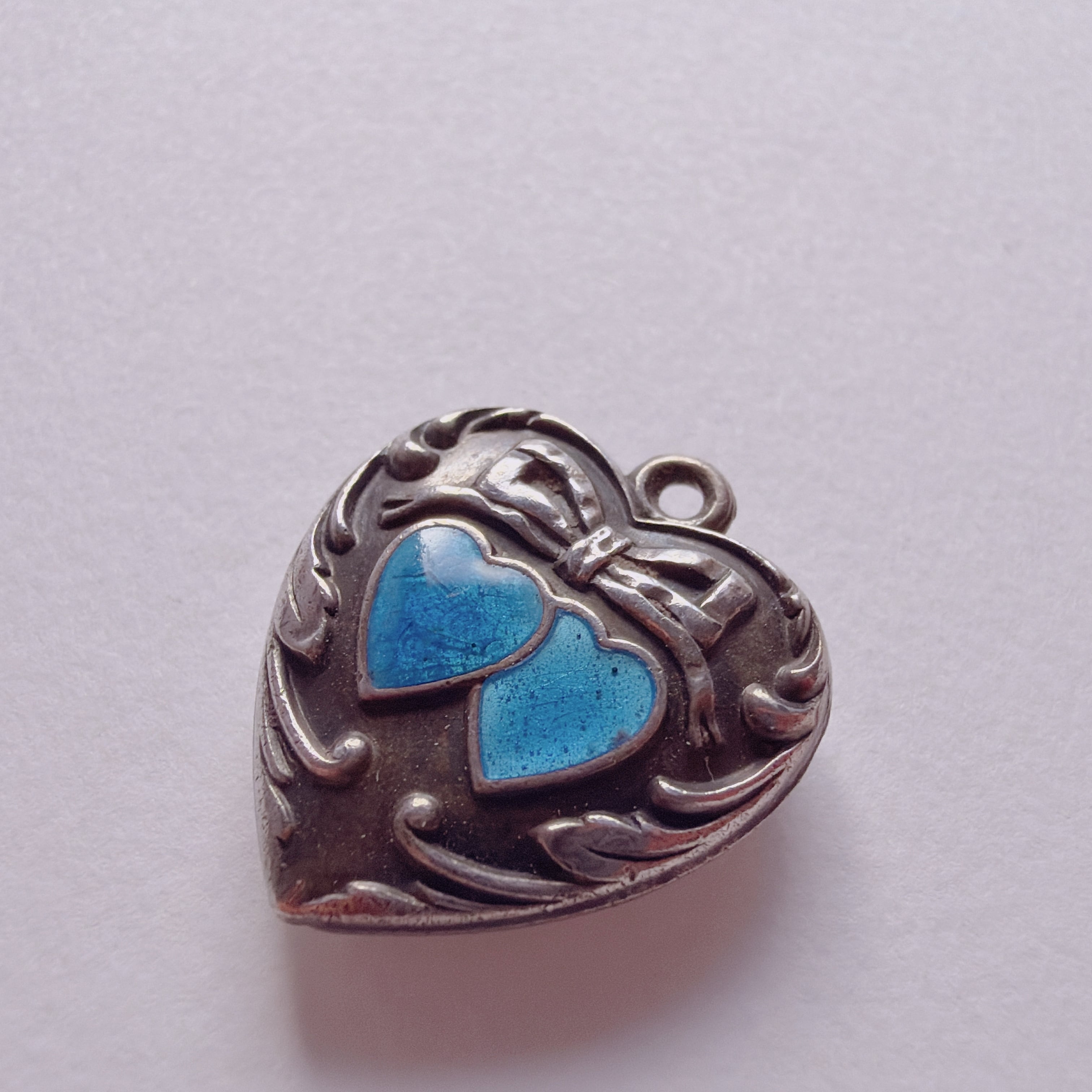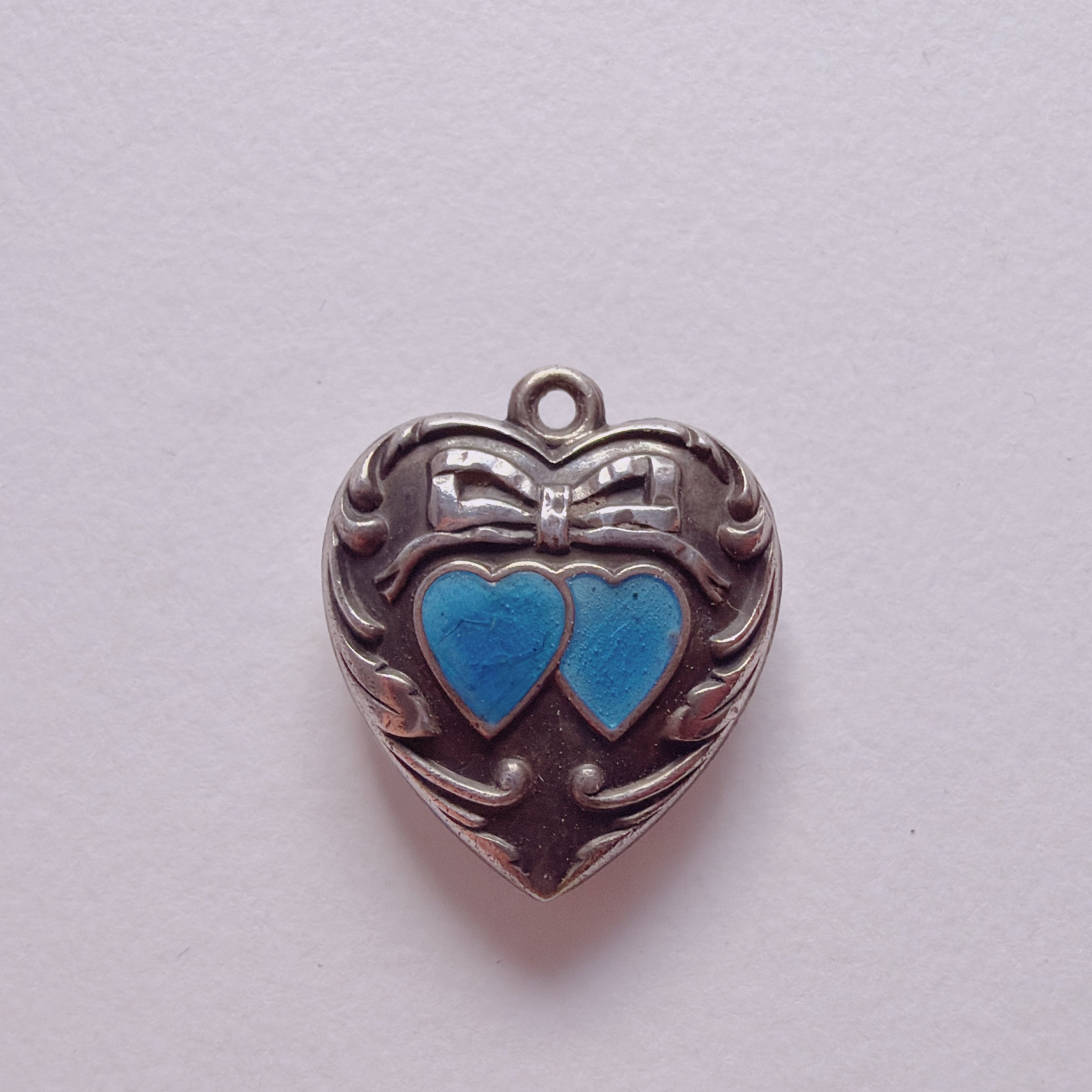 【J348】10s -40s エナメル ツインハート リボン スウィートハートジュエリー ヴィンテージ チャーム