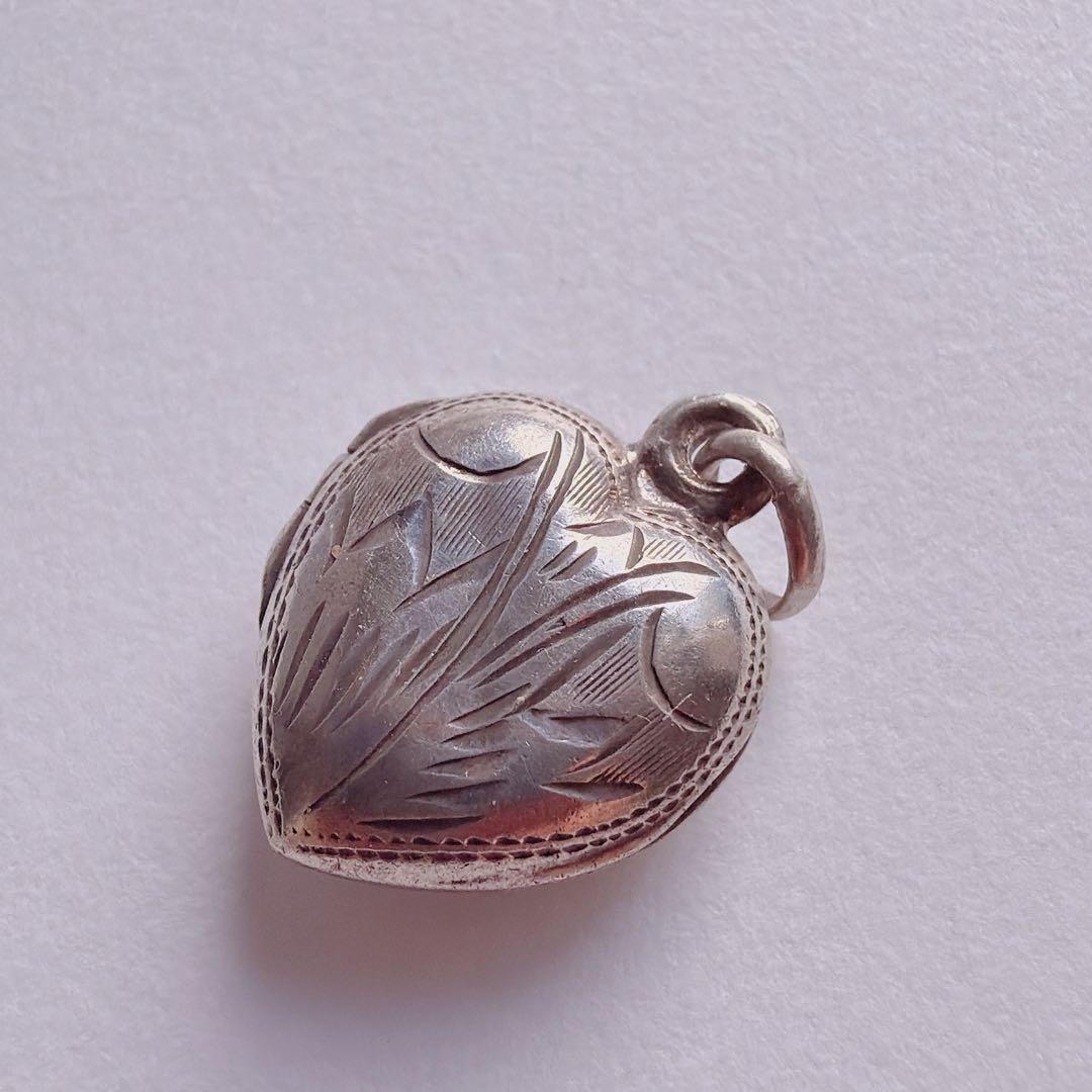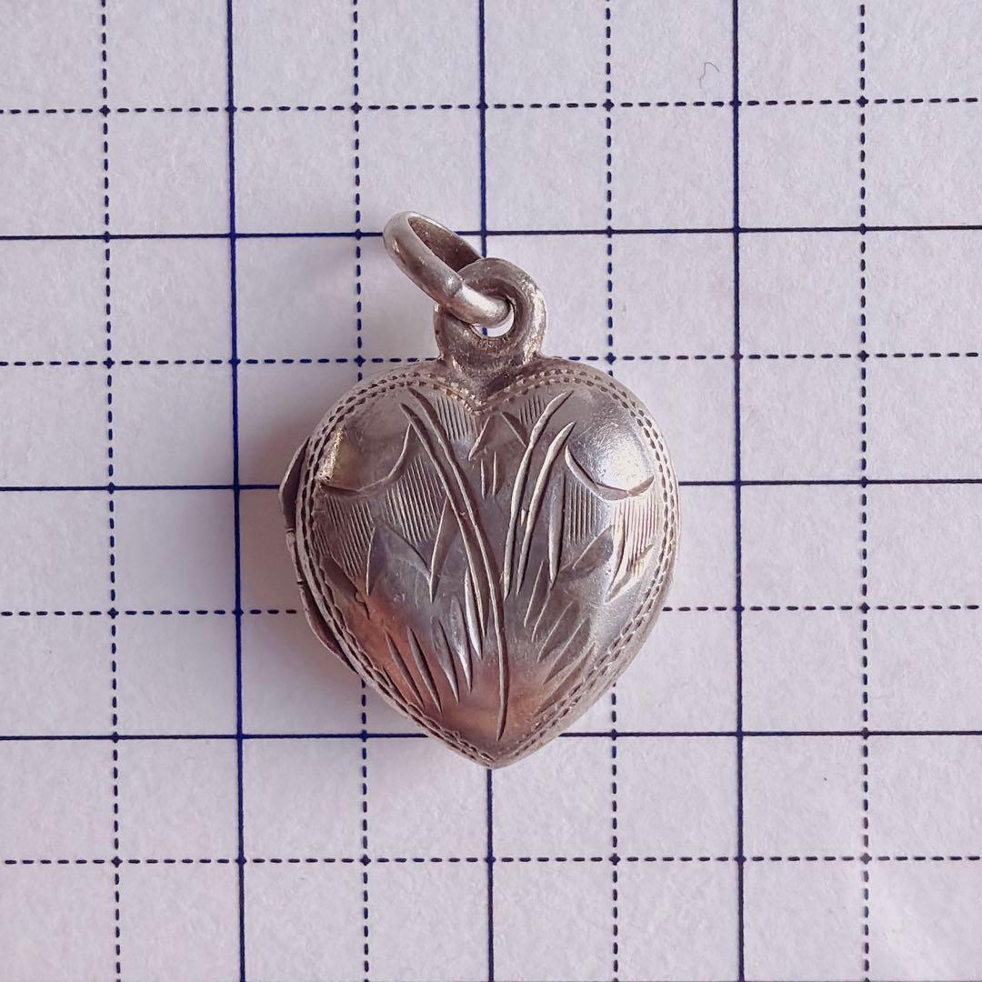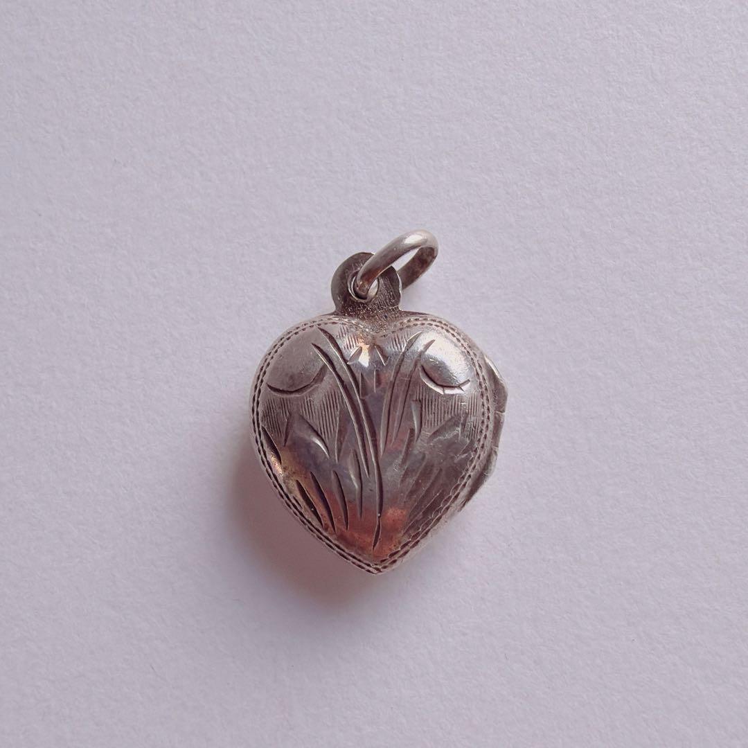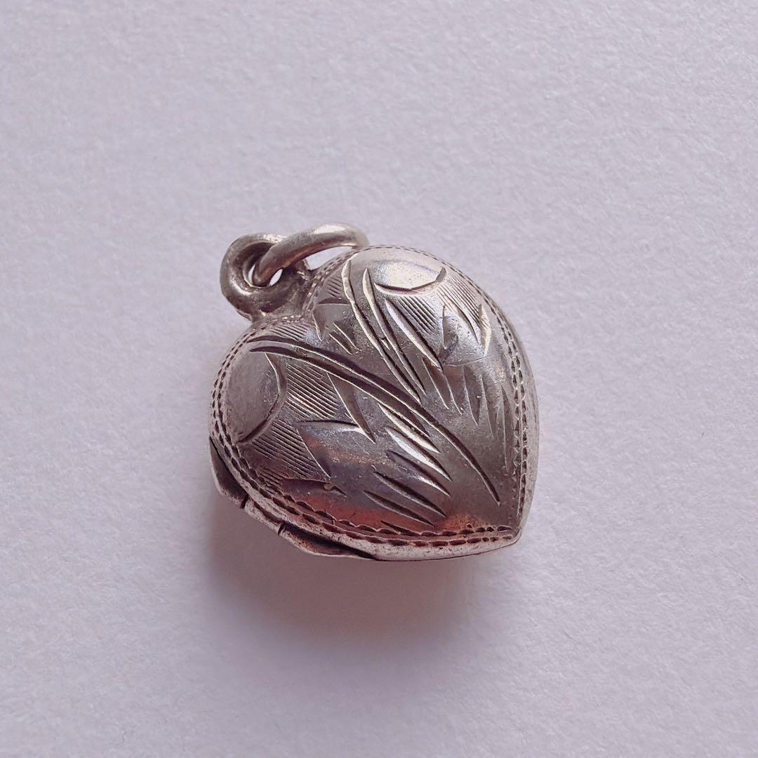 ロマンティックなハート型のロケットに、繊細な植物のエングレービング模様。