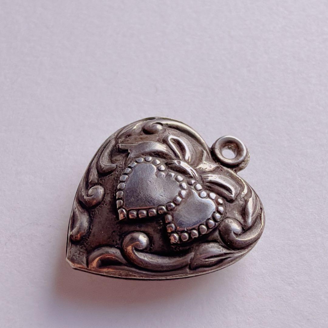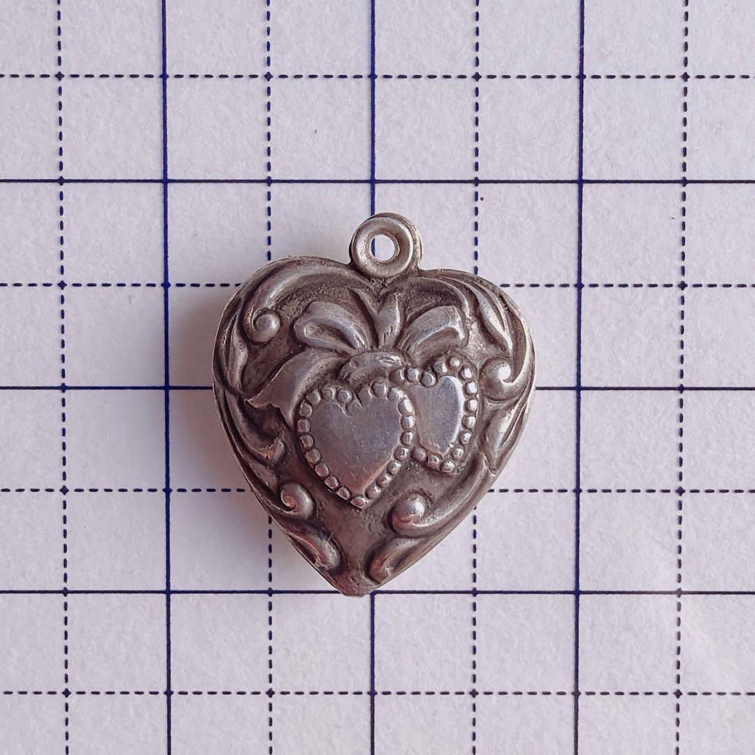 【J366】10s -40s リボン ダブルハート スウィートハートジュエリー ヴィンテージ チャーム