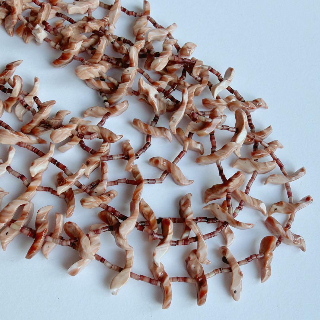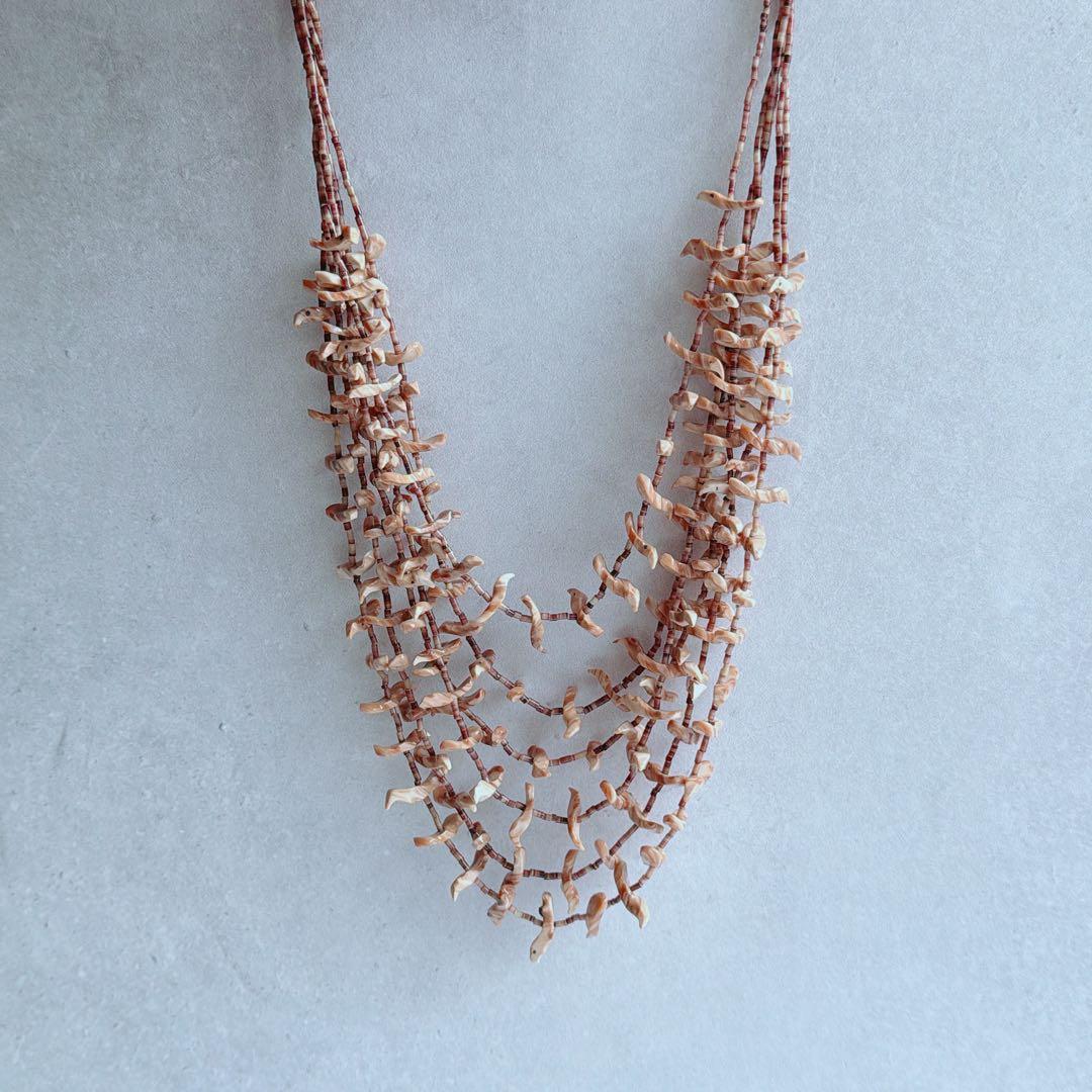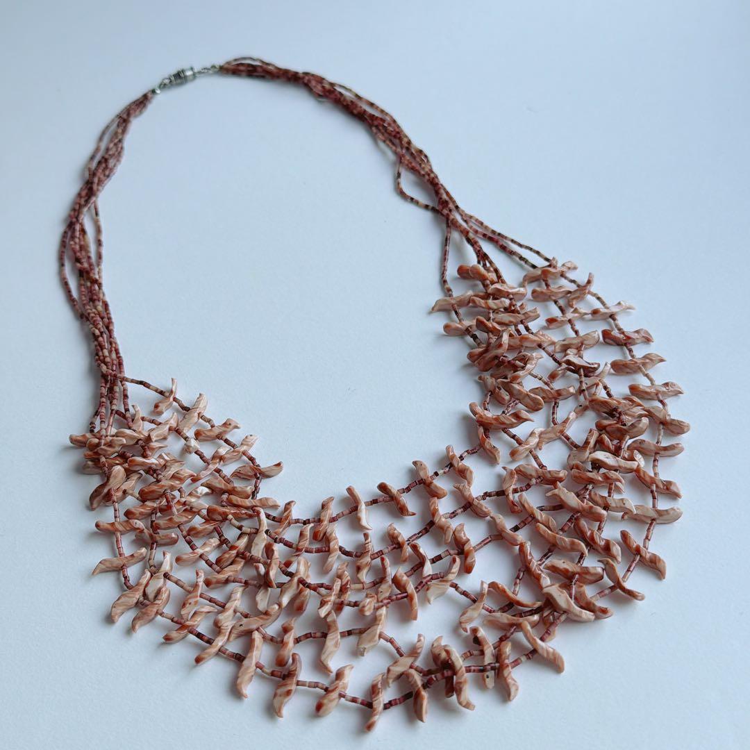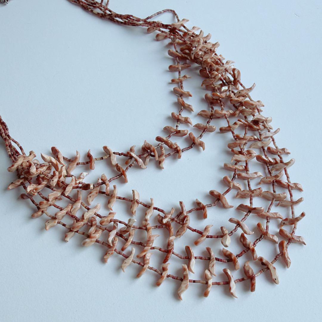細やかな玉つなぎで幾重にも編み上げた、ヴィンテージの首飾りです。