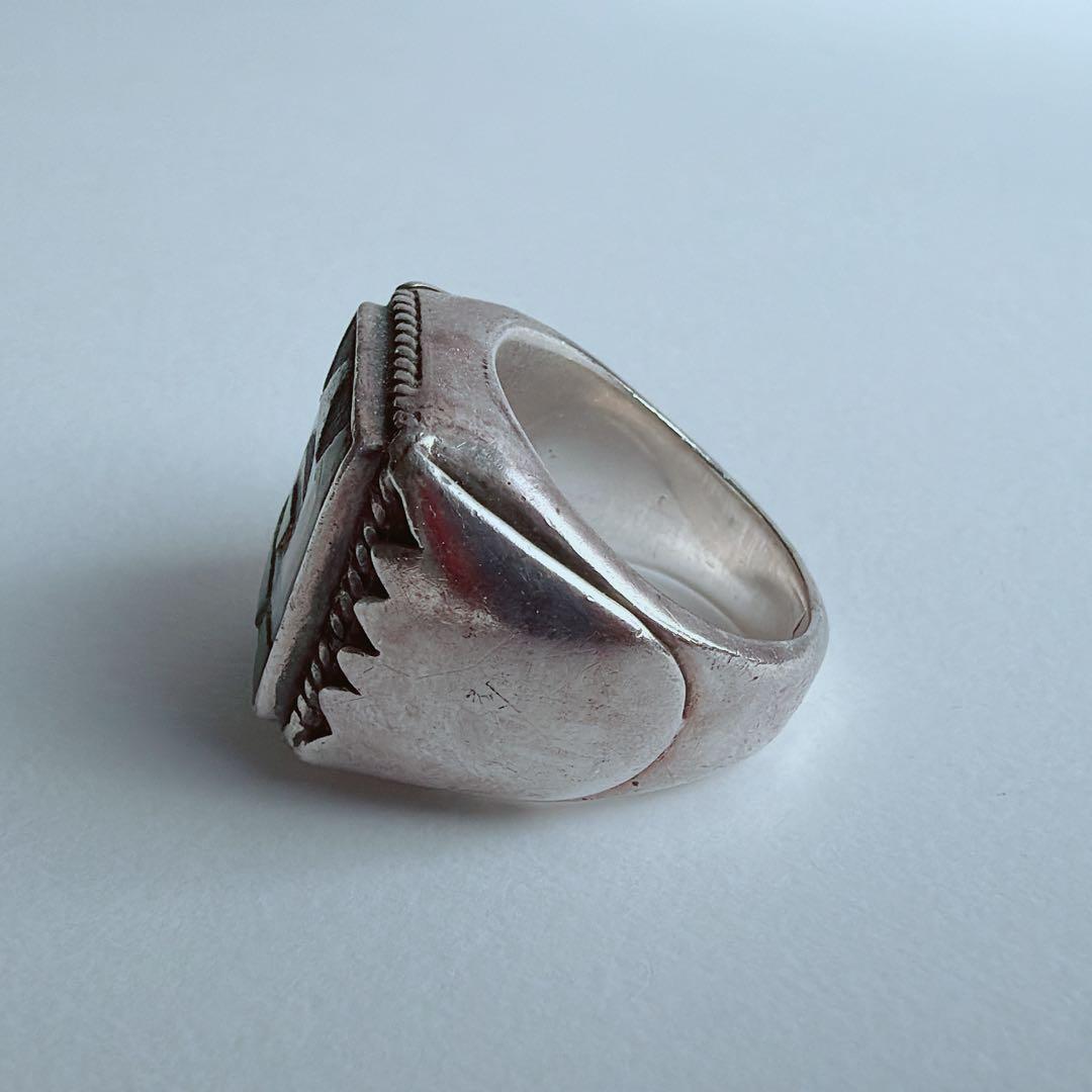 ズニ族の伝統技法による、ヴィンテージのインレイリングです。