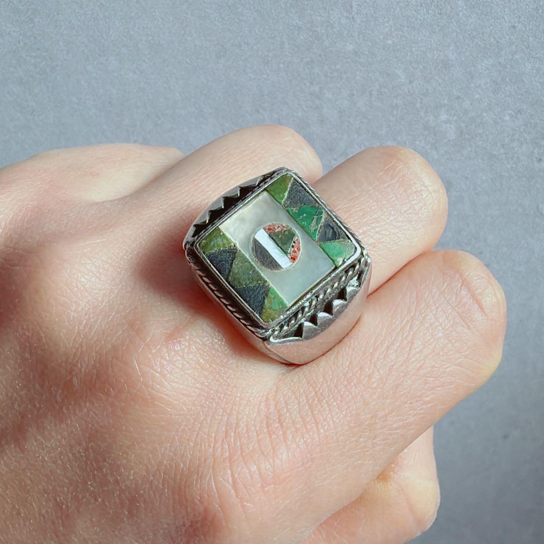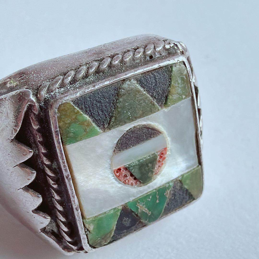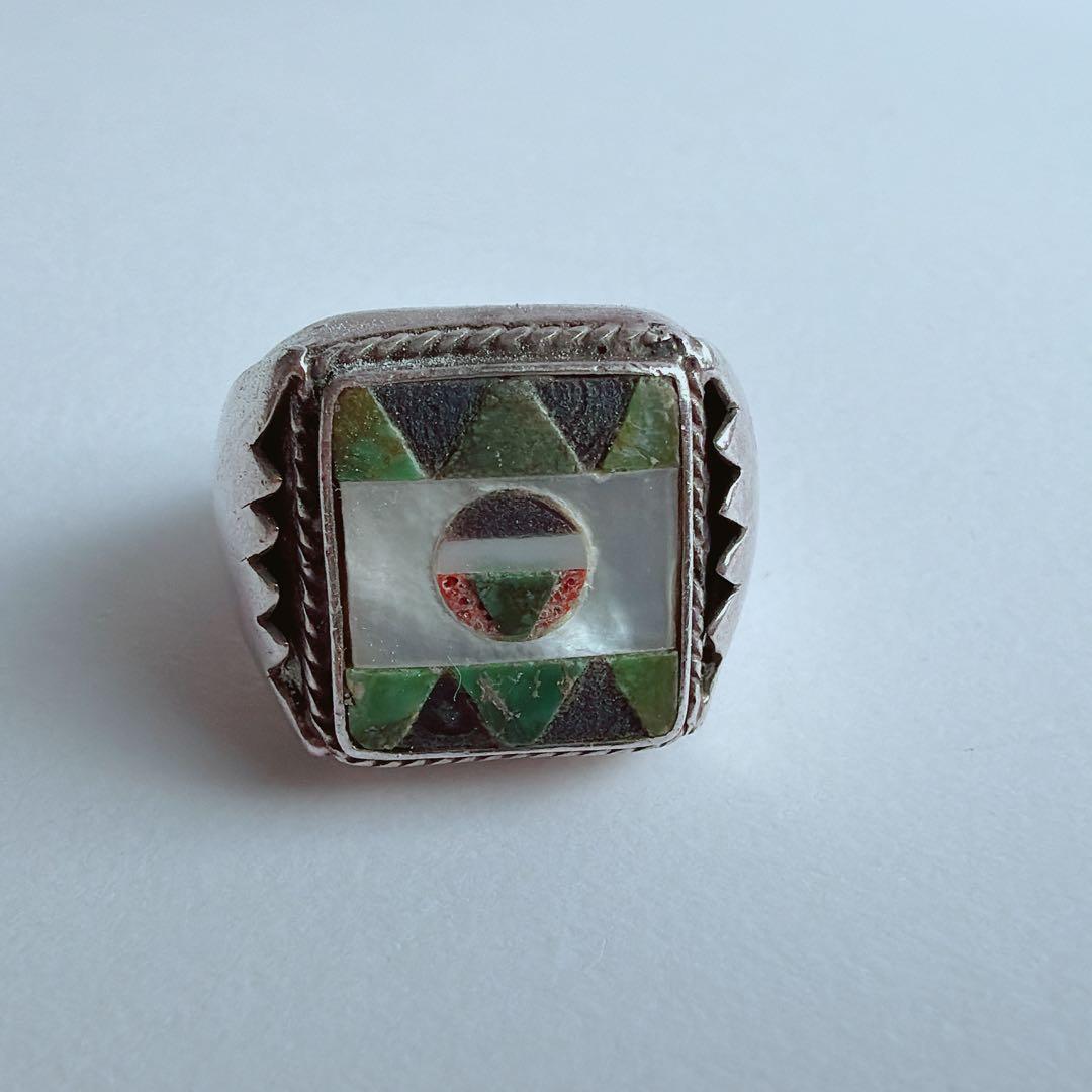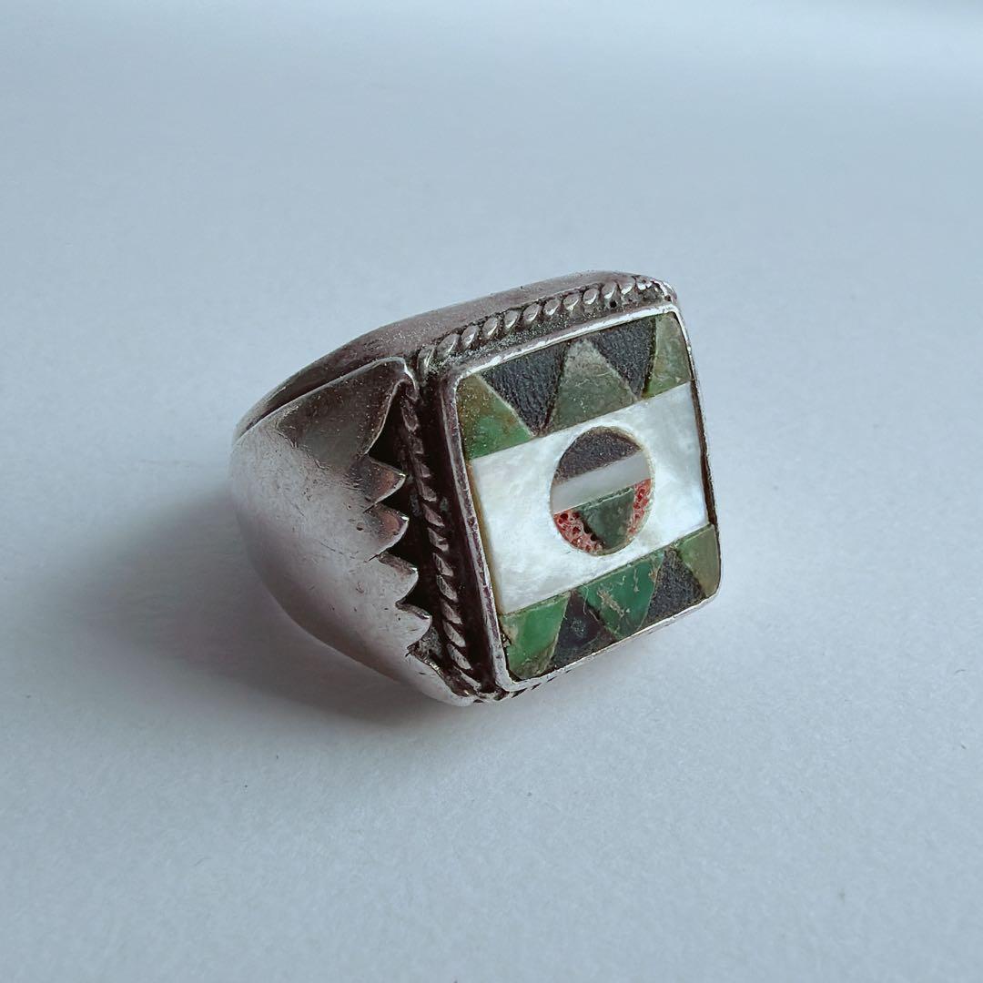 【J381】ヴィンテージ ズニ インレイ リング 16.5号