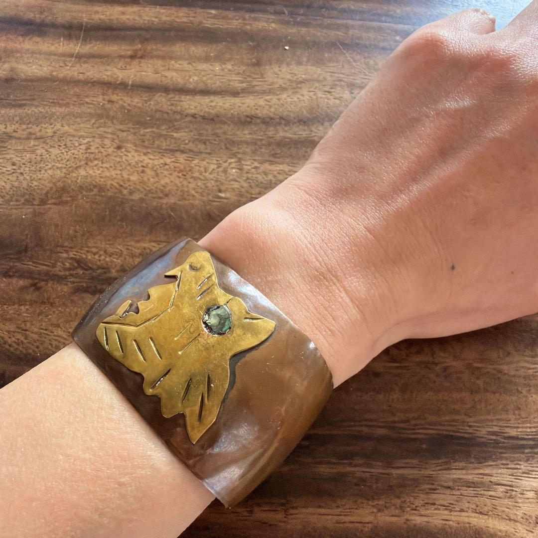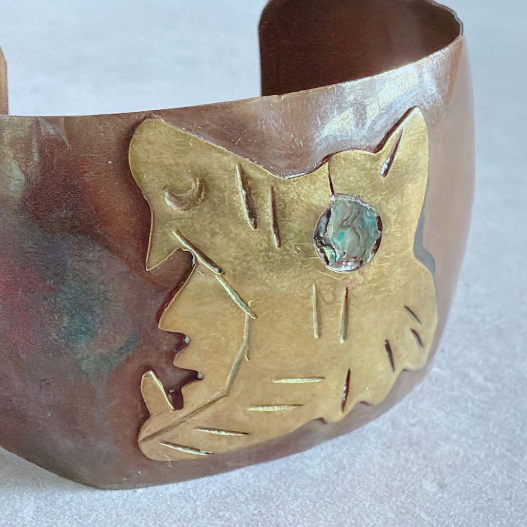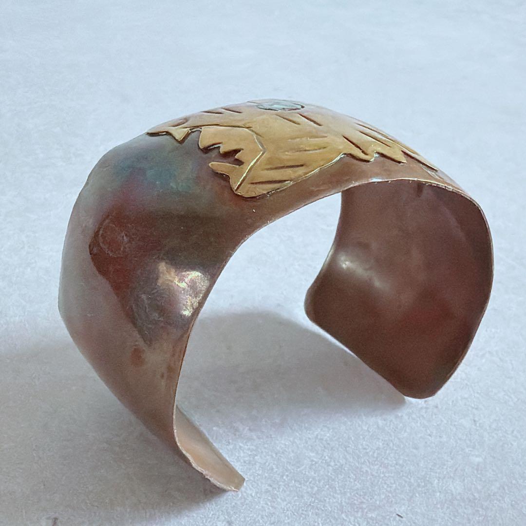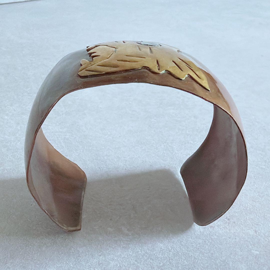 【J395】ヴィンテージ メキシコジュエリー アステカ 銅 真鍮 バングル