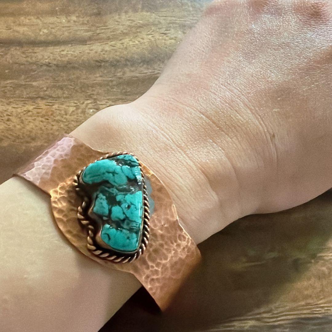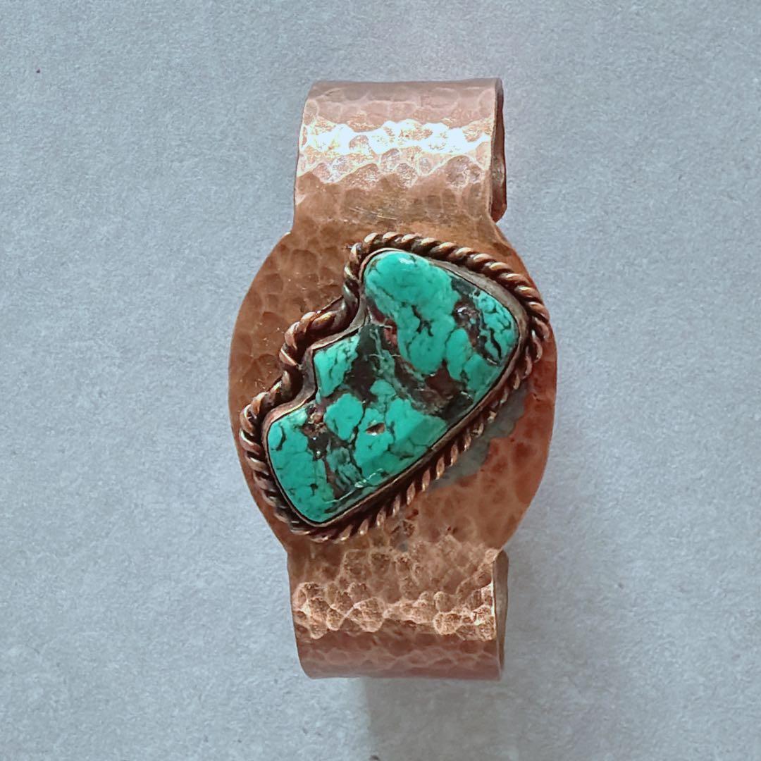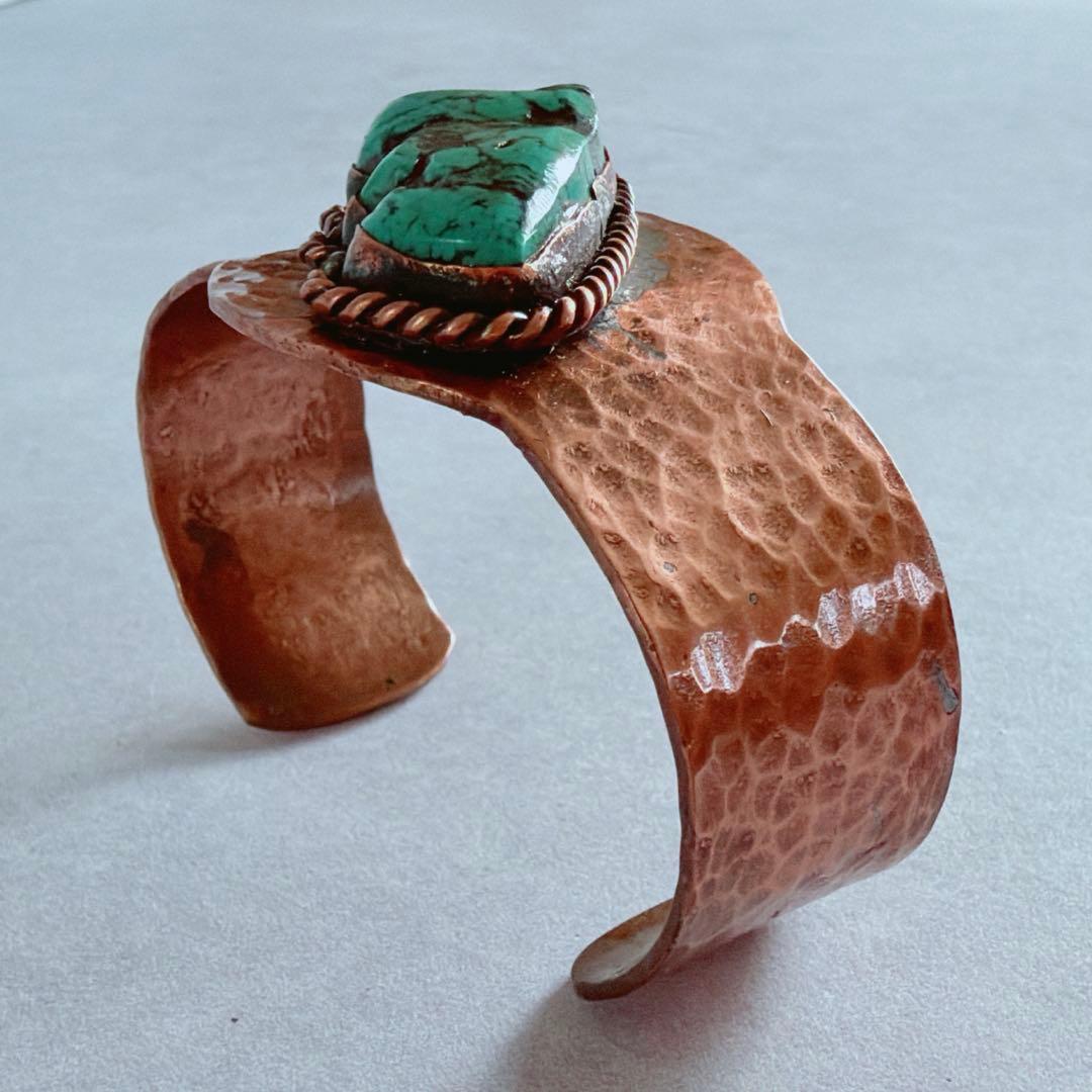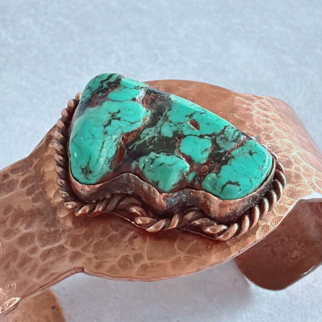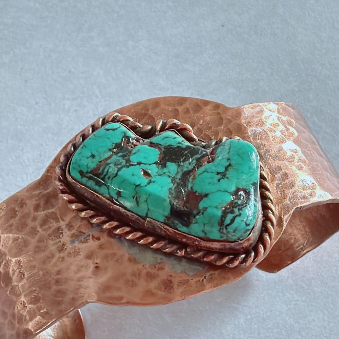 【J394】ヴィンテージ ターコイズ 銅 COPPER バングル