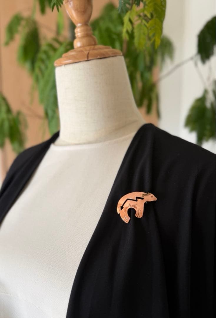 【J397】ヴィンテージ ナバホ族 ベア 熊 銅製 ブローチ